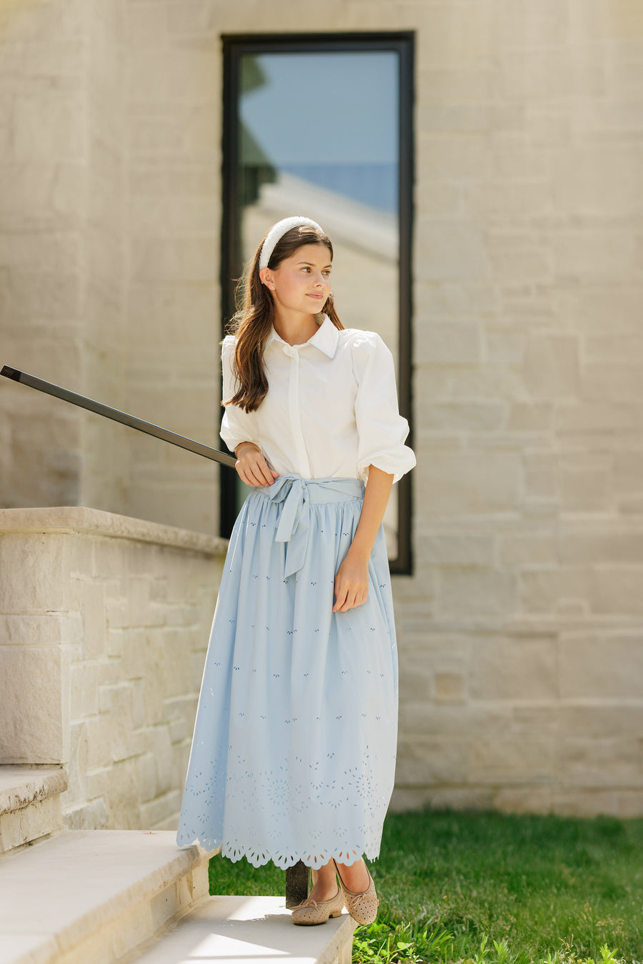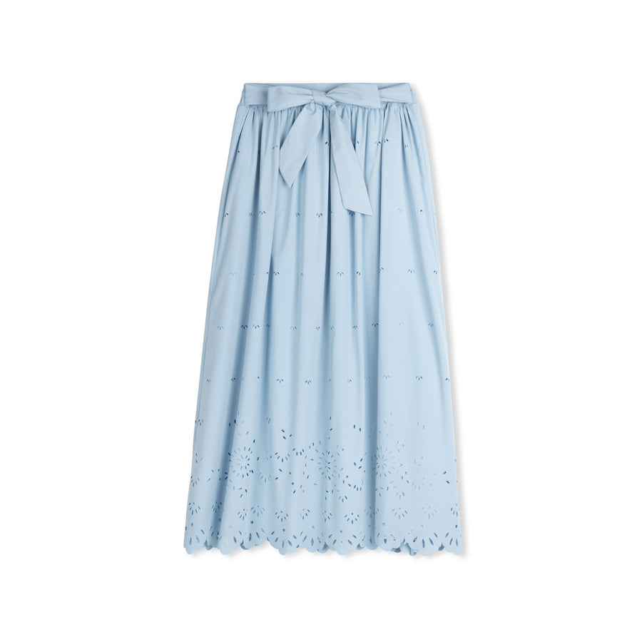 BLUE EYELET MIDI SKIRT